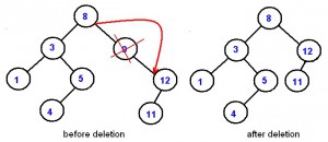 lalu gantilah node yang mau dihapus menjadi node x, kemudian hapus node x.